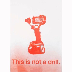 We know that this is the recession of the waters before the Tsunami rolls in, and yet for many there is respite to be gained from life slowed down. Between (oddly self satisfied) grim economic projections, stiff-upper-lip political bravado and decentralised opinion bases like twitter, it’s difficult to know what world we are looking at. What forms of industry, leisure, and life does the future hold? Mirroring this confusion, perhaps, is Julia’s work, Not a Drill (2019), a faded cautionary-orange screen-print of an impact driver and reference to Renè Magritte’s representation of a pipe. In semantic sleight-of-hand the work is not what it says it is and it’s not even what it says it’s not, a drill. It’s the representation of an impact driver, used for screwing screws and not drilling holes. It double-bluffs. It requires layers of knowledge to stay afloat in the game of deciphering its meaning. As far as talismans of an age go, it’s pretty apt.