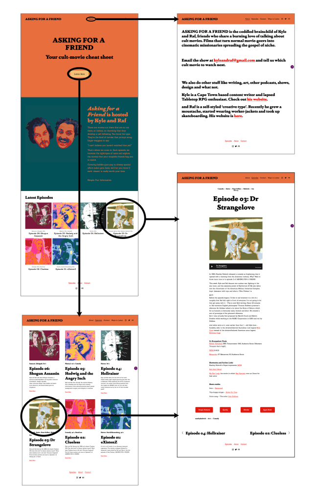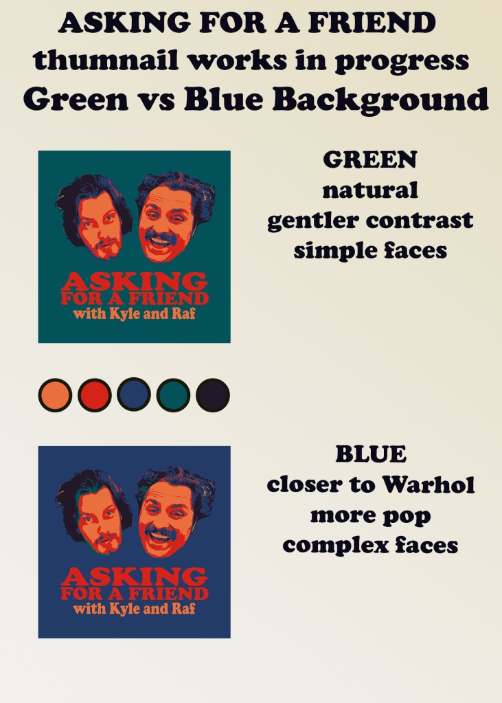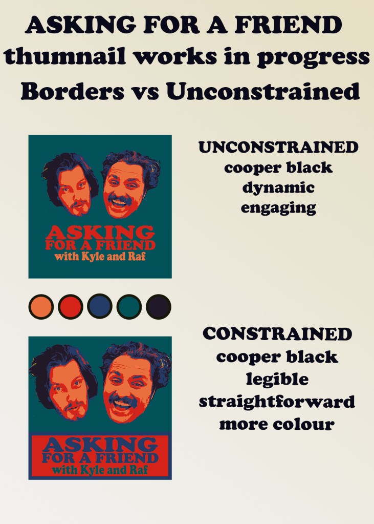 The thumbnails were created to be distinctive, but relatively quick to produce. As this was run entirely by the two of us, time was a huge constraint. I design each episode to a unique set of colours chosen for the specific episode.